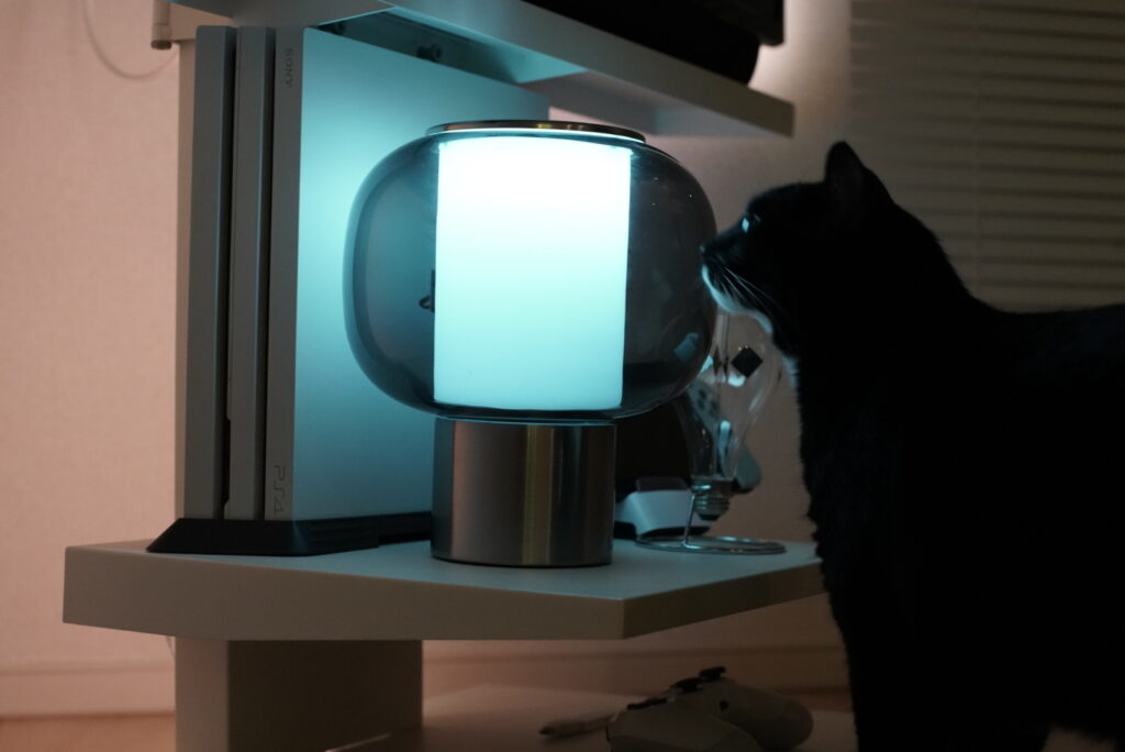 先日ネットで一目惚れした照明、IKEA HÖGVIND(ホーグヴィンド)テーブルランプ。ニッケルメッキの台座とグレーのガラスシェードがおしゃれで、内蔵バッテリーの劣化が気になっていた月型のライトと取って代わるものにしようと、早速スマートホームに組み込もうとしたら、まさかの落とし穴。